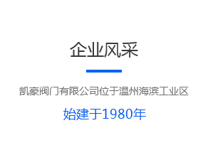 凱豪閥門有限公司位于溫州海濱工業區,企業占地面積20000平方米。初建于 1985 年,注冊資金5008萬;工廠主要生產 ANSL、JIS、DIN 和 GB 標準的閘閥、截止閥、止回閥、球閥、蝶閥、 旋塞閥,疏水閥,過濾器等產品。并能按照客戶提供的要求定制各...